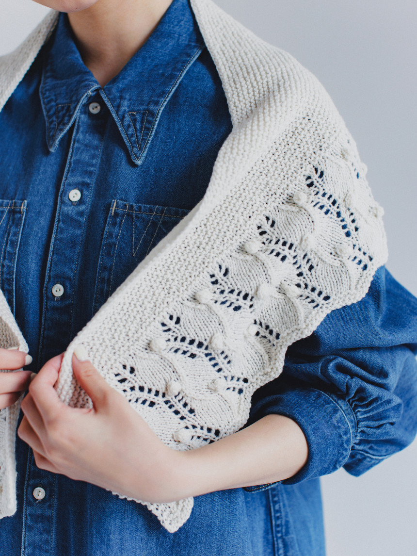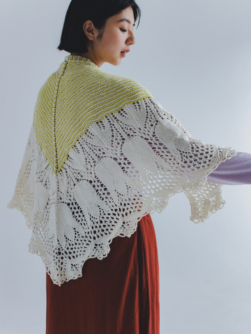 [DARUMA Knit Kit] 보태니컬 모티브 숄 키트 - 캐시미어 릴리 Ver.