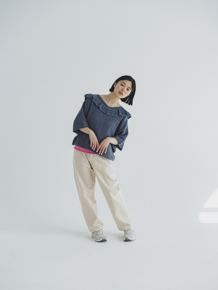 [DARUMA Knit Kit] 크로셰 프릴 칼라 풀오버 키트