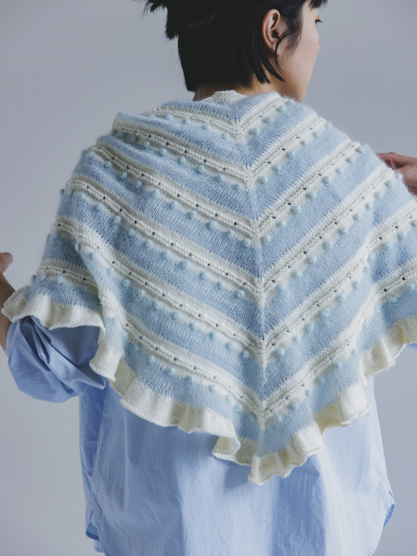 [DARUMA Knit Kit] 시어 보더 프릴 숄 키트